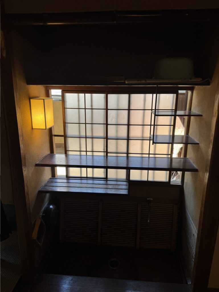 ↓茶室にある「違い棚」、わびさびの文化ですね。
