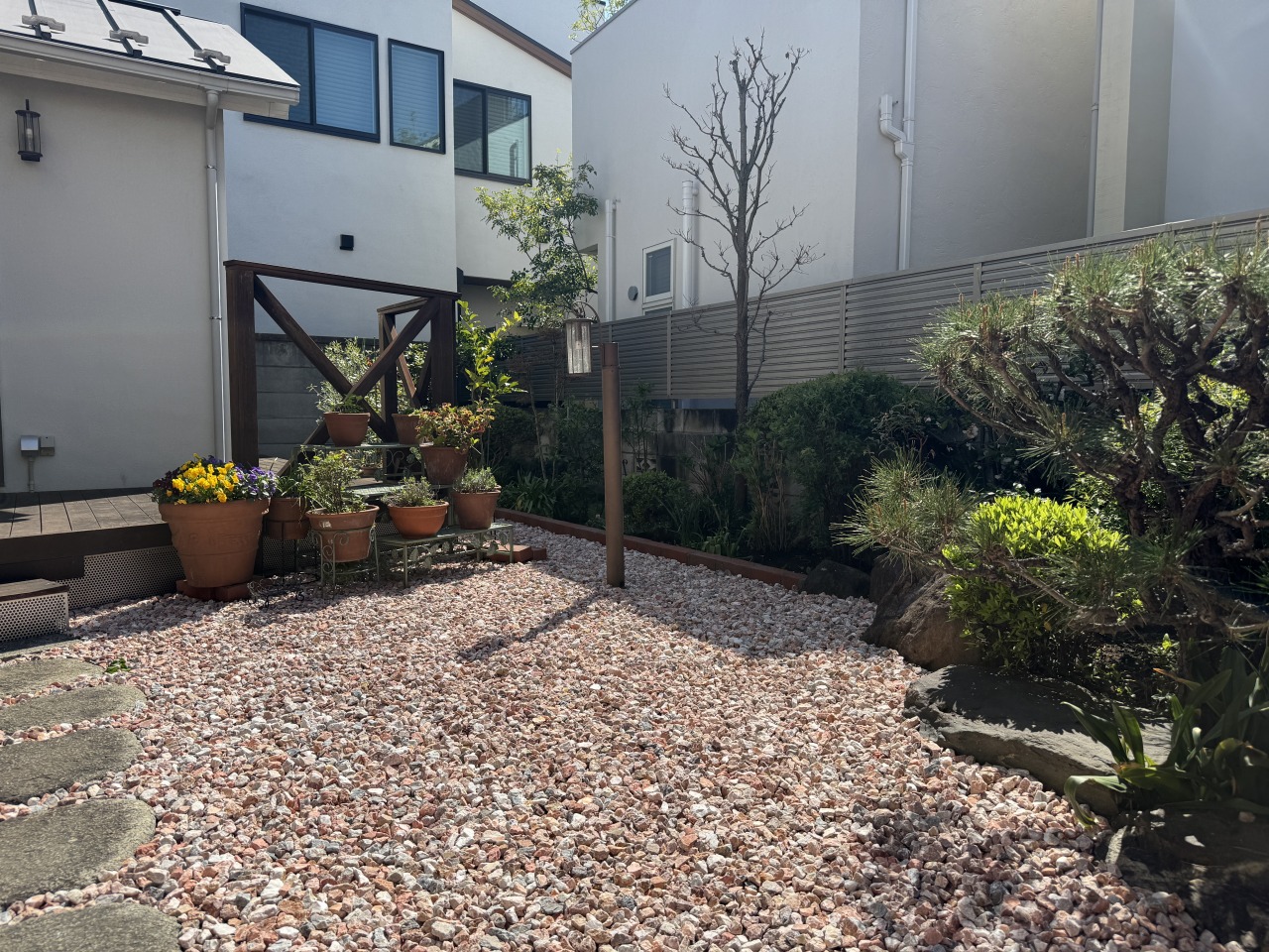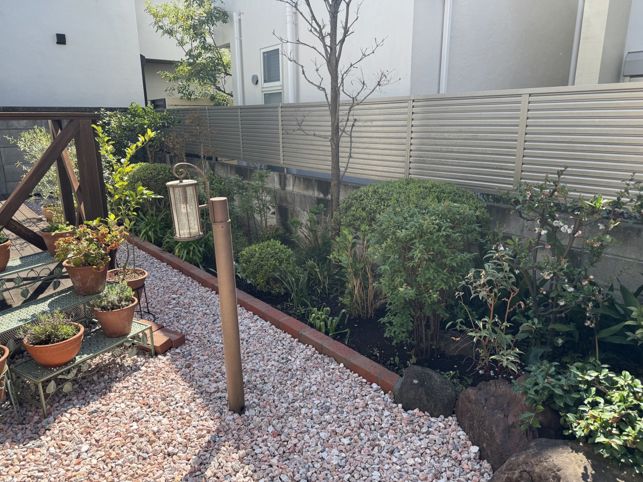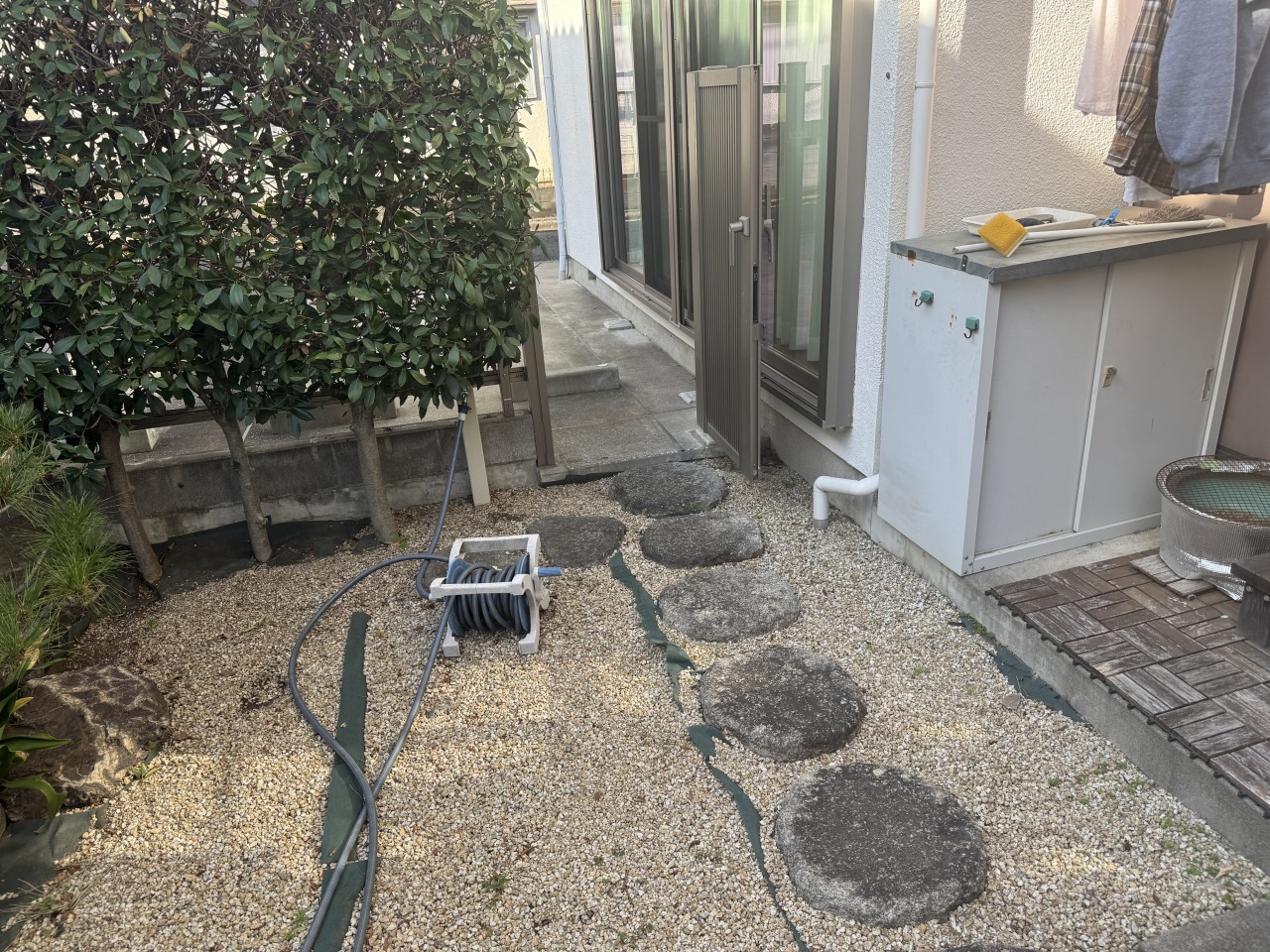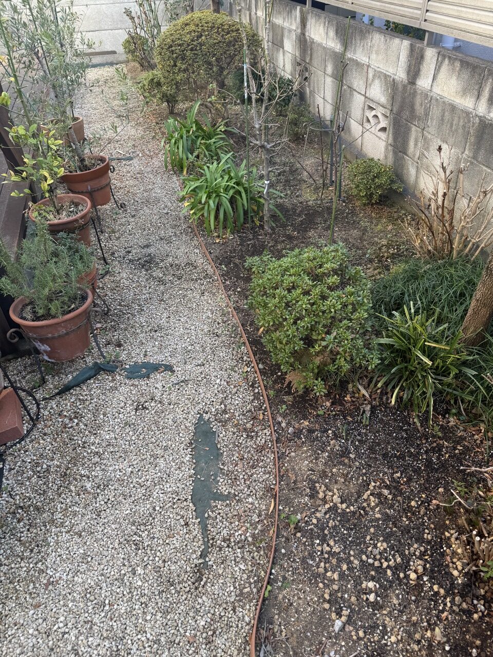 現況の砂利、防草シートを撤去、再度施工させていただきました。
