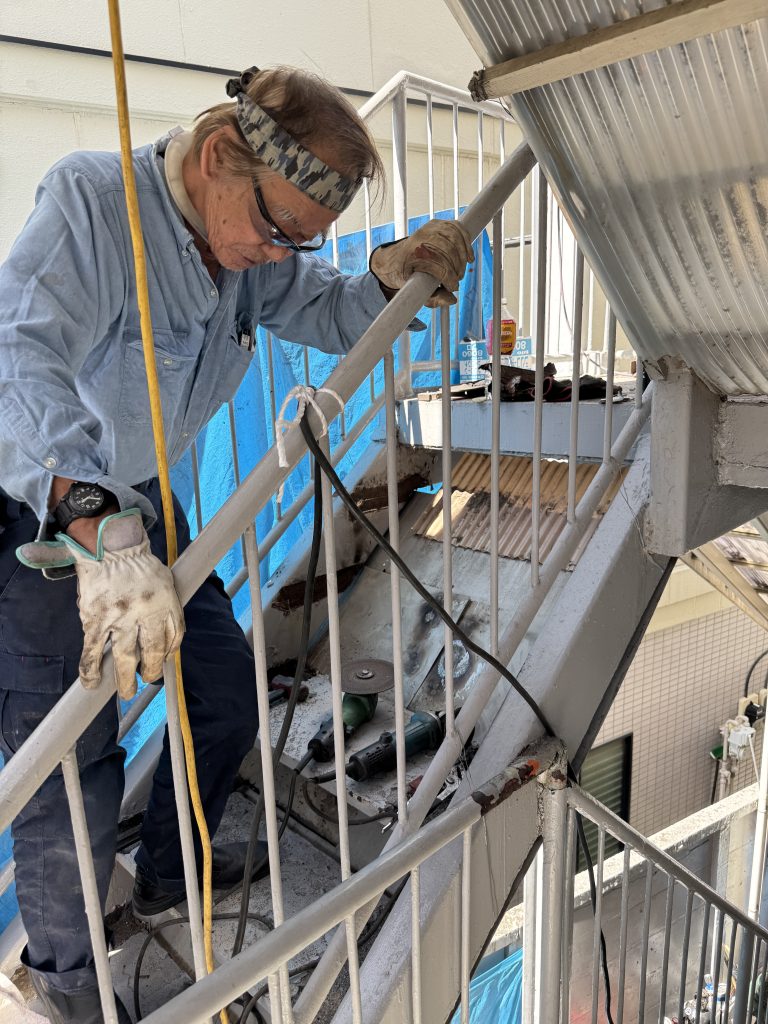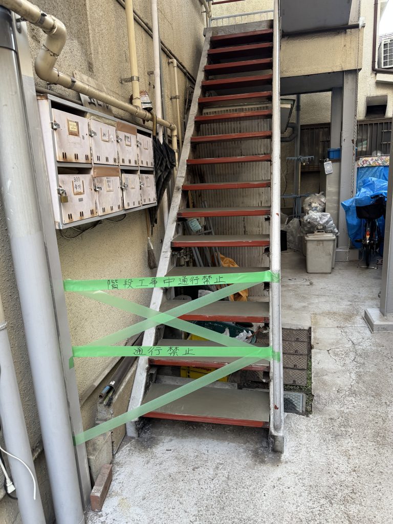 鉄骨階段の工事からスタート、