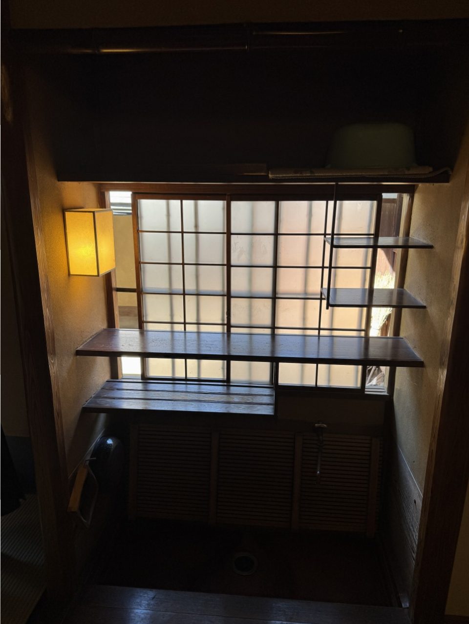 ↓茶室にある「違い棚」、わびさびの文化ですね。