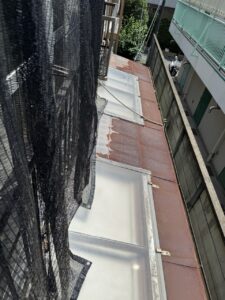 雨漏れの原因となっていた下屋の天窓を撤去してバルコニーを設置。